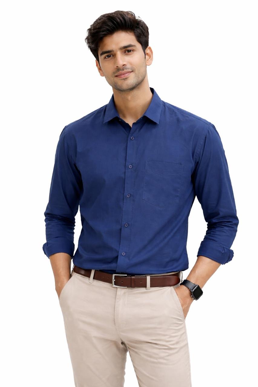 Sharp midnight blue formal shirt with a rich tone and sleek design.